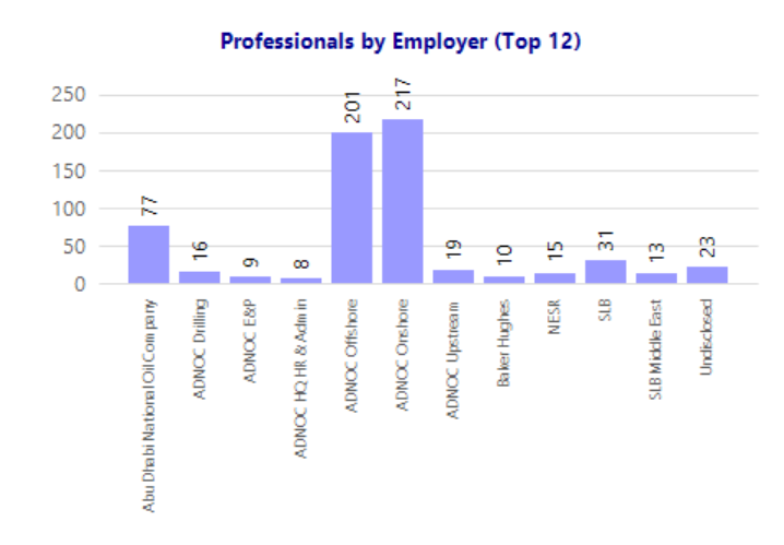 It all starts with recruitment. Understanding your membership demographics can help you find new members. SPE offers a range of member benefits, and sections play an essential role in building up on the programs and services offered through SPE and customizing them to suit the needs of their local group. Identifying the key companies in your local area, which are represented by your current members, can provide further insight in potential areas of membership growth. If a specific company has a large base in the area, but only a few company employees are members of your section, then this may be a potential area for growth to explore. Membership Builder allows a quick and easy breakdown of companies represented amongst your membership. You can access this through the 1. Section Dashboard report, under the 'Professionals by Employer (Top 12)' table.