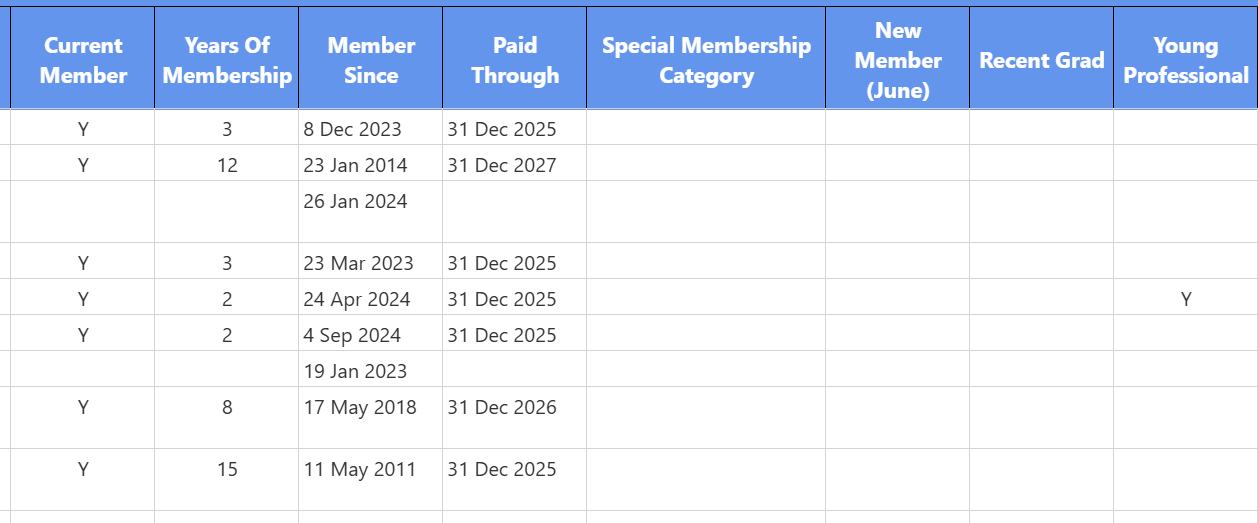 Lapsed member might be an ‘easy win’ for getting your membership numbers back up. They were once a member and may have simply forgotten to renew their membership. You can easily identify those members who have not renewed, by running the 1a. Section Professionals: Members report and identifying those who do not have "Y" listed in the ‘Current Member’ column.