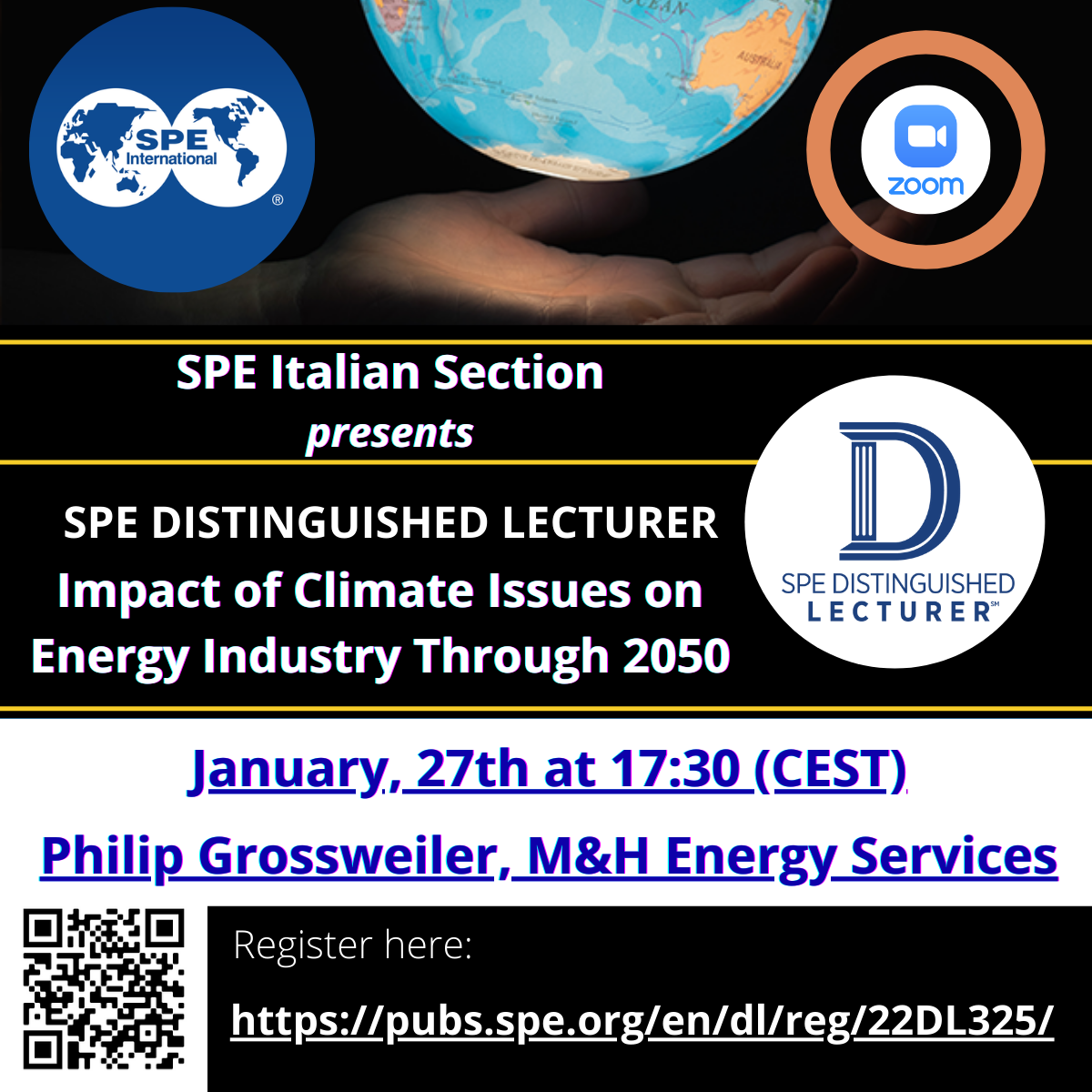 Join SPE Italian Section for the Distinguished Lecture “Impact of Climate Issues on Energy Industry Through 2050”, on January, 27th from 17:30 (Italy Time CET).