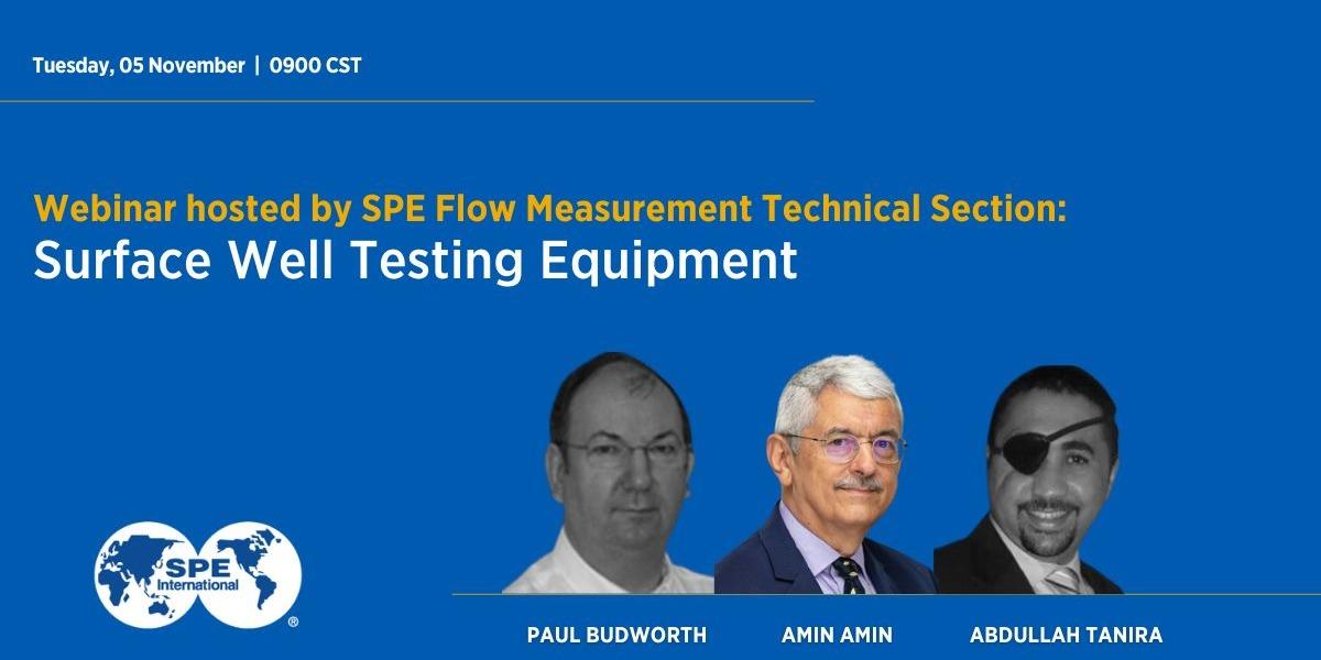 SPE FMTS is excited to be hosting a brand new webinar "Surface Well Testing Equipment" on November 5. This is the first webinar of the SPE FMTS Hosted Webinar Series, titled "Practical Aspects of Surface Well Testing".
