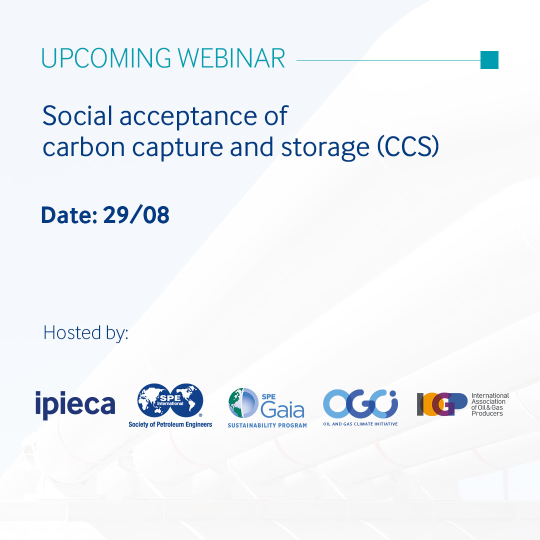 In partnership with SPE Gaia, SPE CCUS Technical Section, IOGP and OGCI, Ipieca is holding this webinar which will offer a range of perspectives around the social acceptance of CCS.