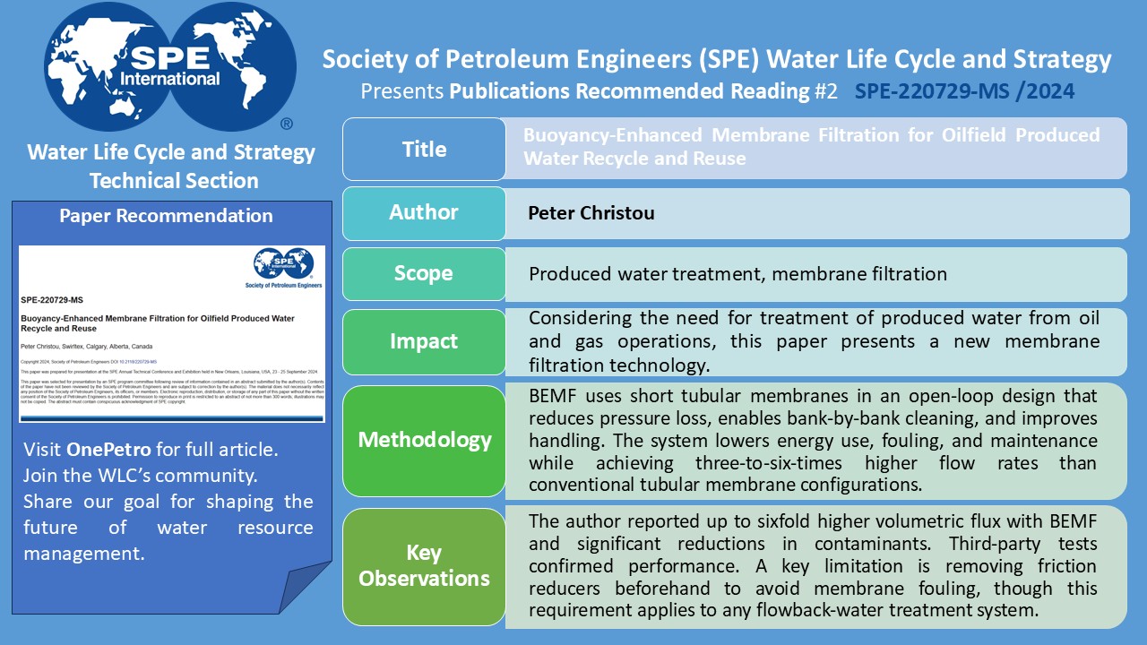 - ✓Provide means for communications among the Water Life Cycle and Strategy community in the petroleum industry