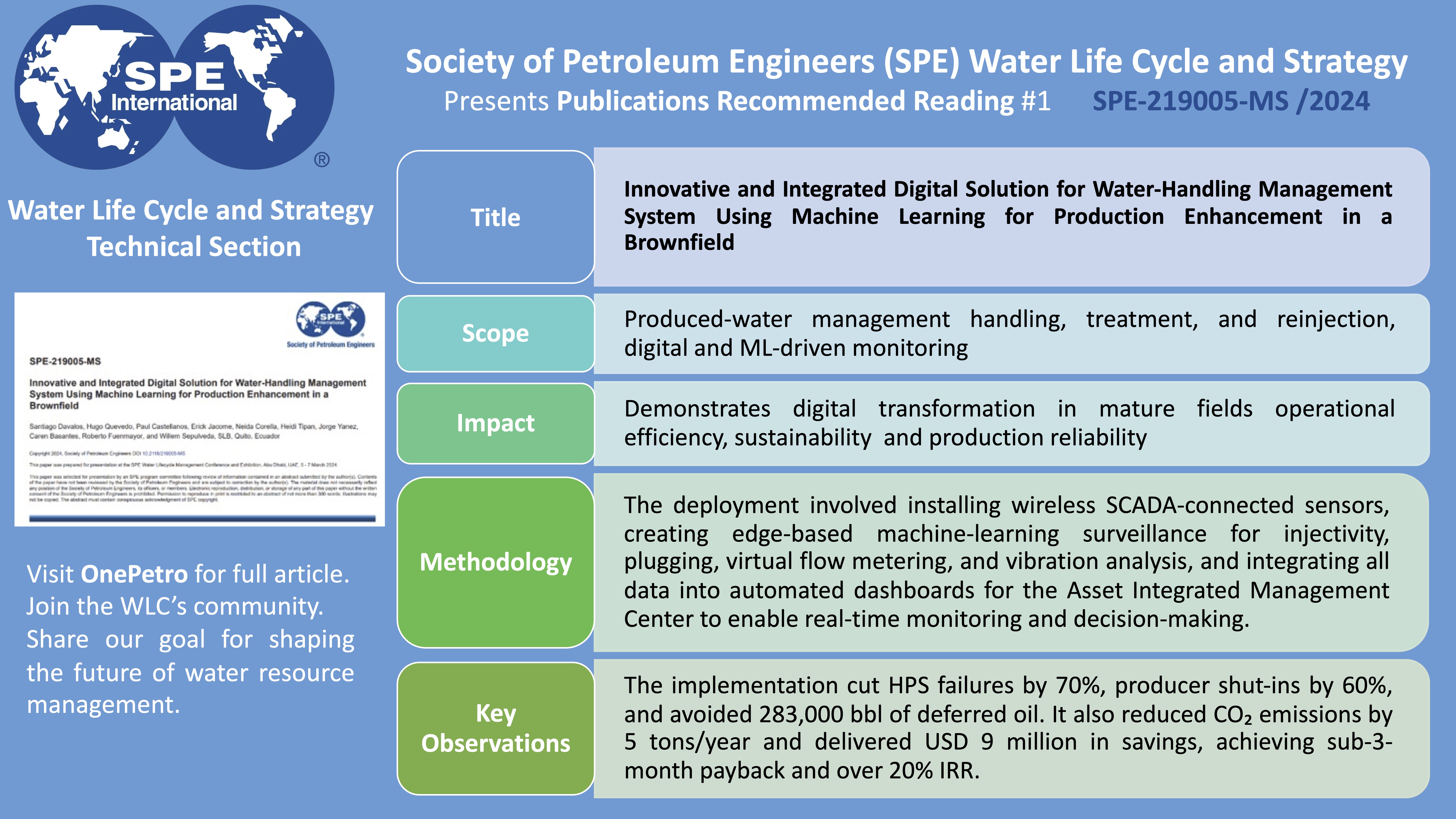 The Water Handling and Management Committee is pleased to announce this technical section has been renamed to Water Life Cycle and Strategy. This change is part of the roadmap to re-develop the charter/constitution of this technical section and communicate a broader scope that would include surface and subsurface water issues and solutions.